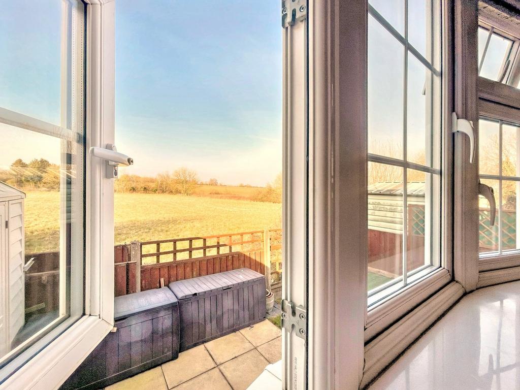 2.56m x 3.49m (8' 5" x 11' 5") A good size double bedroom with field views from the bay window. The bedroom has the benefit of a double fitted wardrobe and overbed fitted units for further storage. Fitted carpet. Radiator. Double glazed windows.