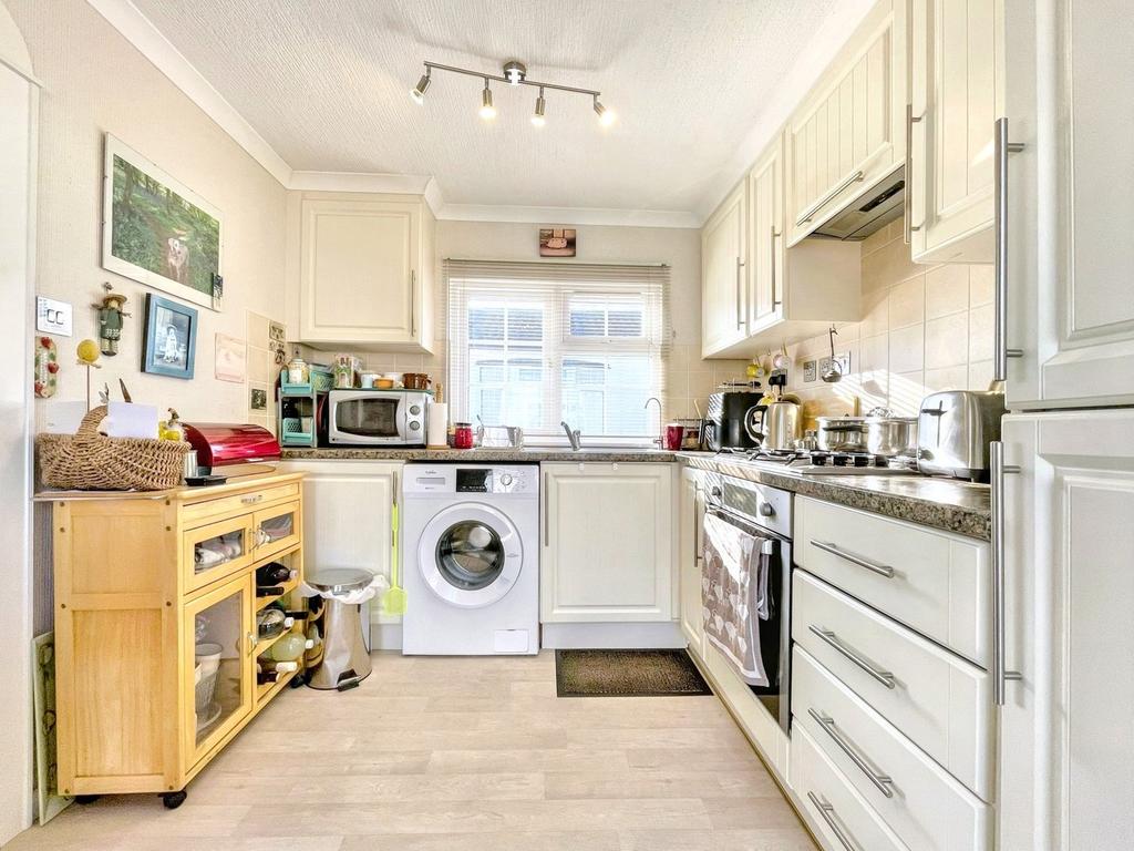 2.47m x 3.49m (8' 1" x 11' 5") A well presented kitchen/breakfast room with fitted floor and overhead units. The kitchen features integrated appliances including fridge/freezer and oven with gas hob top and overhead extractor fan. Fitted laminate flooring which is easily maintained. Double French doors lead out on to the front of the property. The kitchen/breakfast room features an opening into the reception area providing an open plan layout.