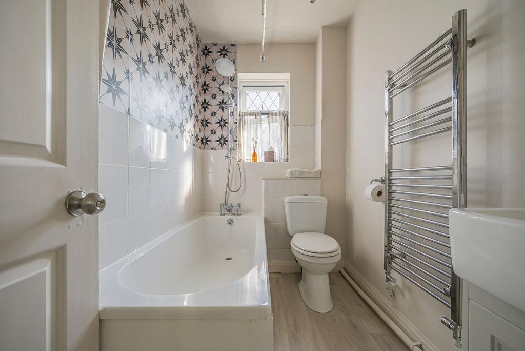 Upstairs, you’ll find two well-sized bedrooms and a stylish family bathroom. The home has been fully updated with new carpeting throughout, creating a fresh, inviting atmosphere.