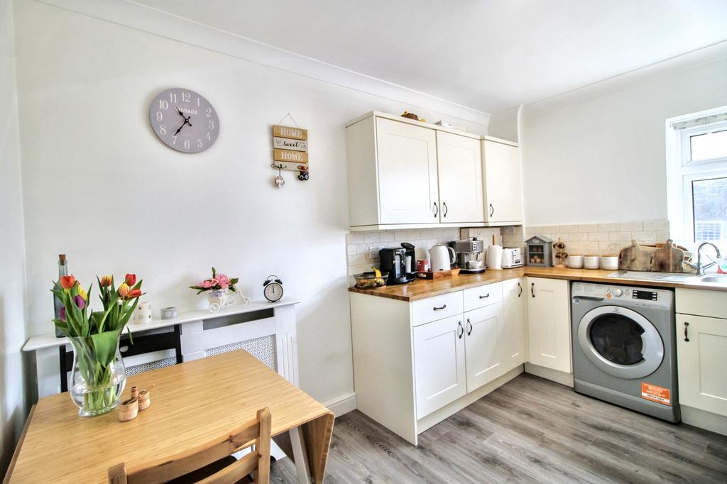Upon entering you will instantly pick up on the crisp clean finish which continues throughout. With doors to all rooms you will also find to two handy storage cupboards. The main living area is a spacious well proportioned room being 15+ft and also naturally light with its large window. With ample space for settees and other furniture the room also enjoys a view over the garden. The kitchen breakfast room is well equipped with a range of eye and base level storage units, work surface area, built in gas hob, oven, along with space for a fridge freezer, washing machine and dishwasher. The kitchen also offers plenty of space for a dining table.