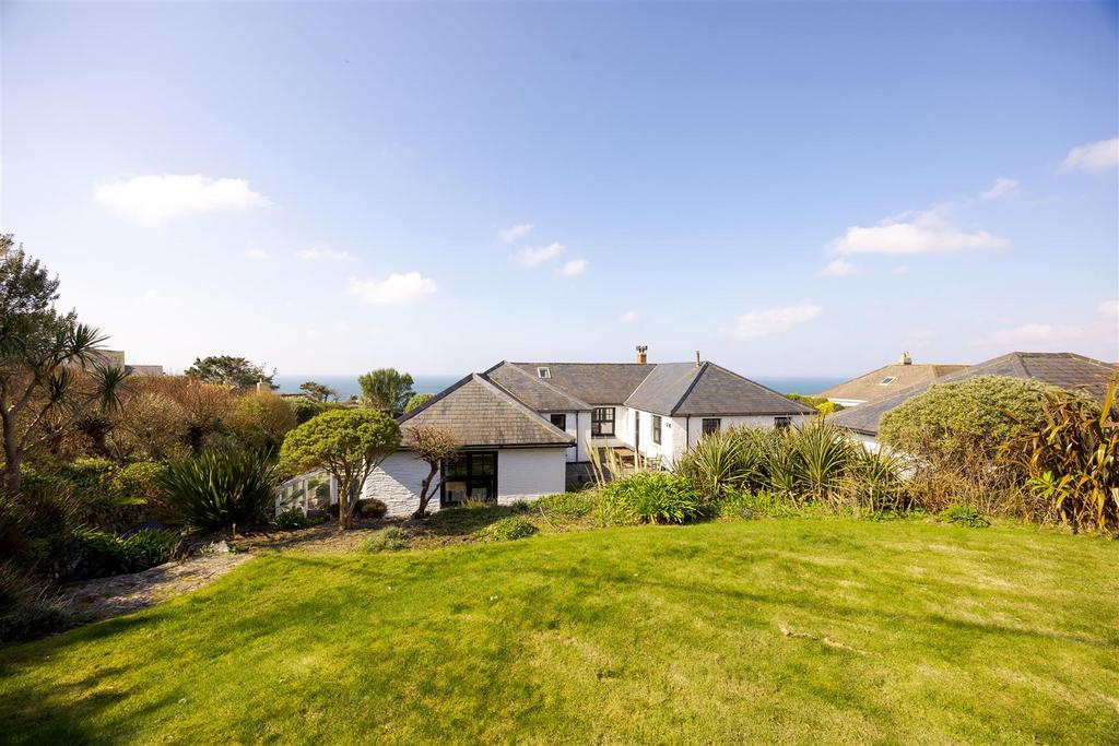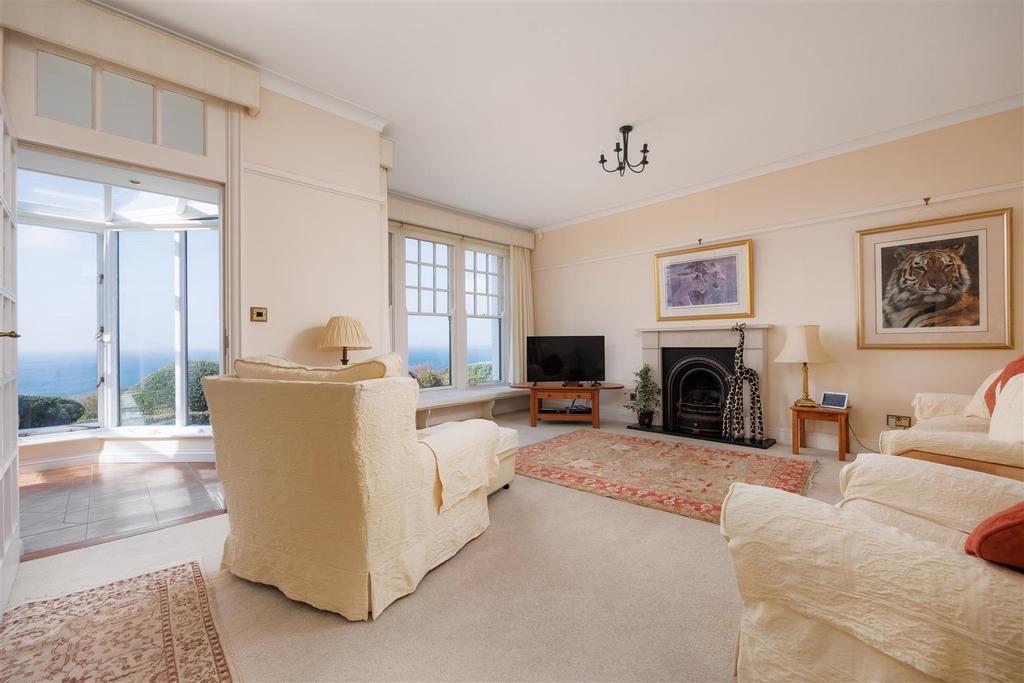 A generous sitting room opens into the sunroom, which boasts the most magnificent outlook in the house, along with direct access to the front terrace and the garden beyond. For those wishing to work from home, there is well-sized study, again with sea vistas. The generous master bedroom suite also enjoys a superb outlook. In addition, there are four further bedrooms, three of which benefit from en-suite facilities, as well as a loft room.