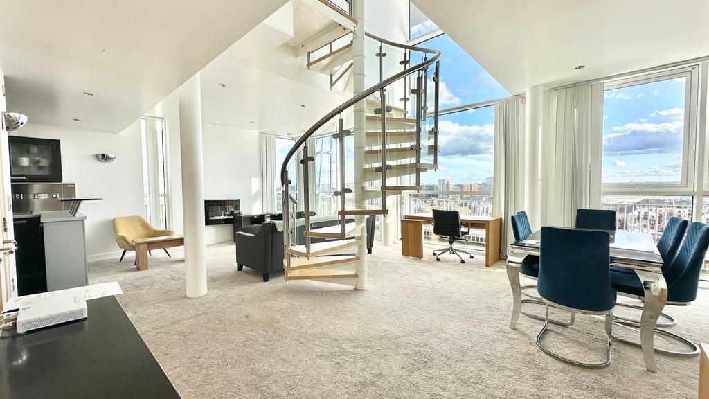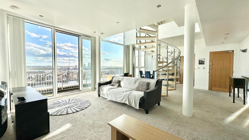 This beautifully presented, chain-free, two-bedroom duplex penthouse is located in the desirable Aegean Apartments, offering modern living in a prime East London location. The spacious open-plan living area is bathed in natural light, creating a welcoming atmosphere, while the fully equipped kitchen is perfect for both cooking and entertaining.