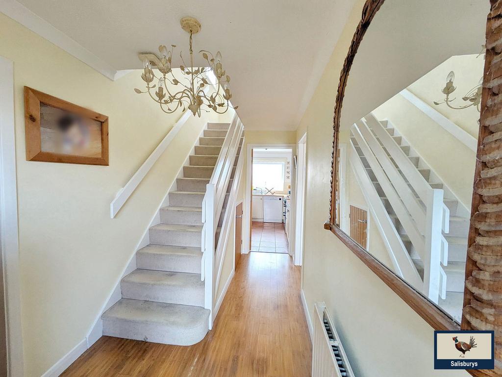 Entrance Hallway: Fitted throughout with engineered bamboo flooring, stairs to upstairs landing