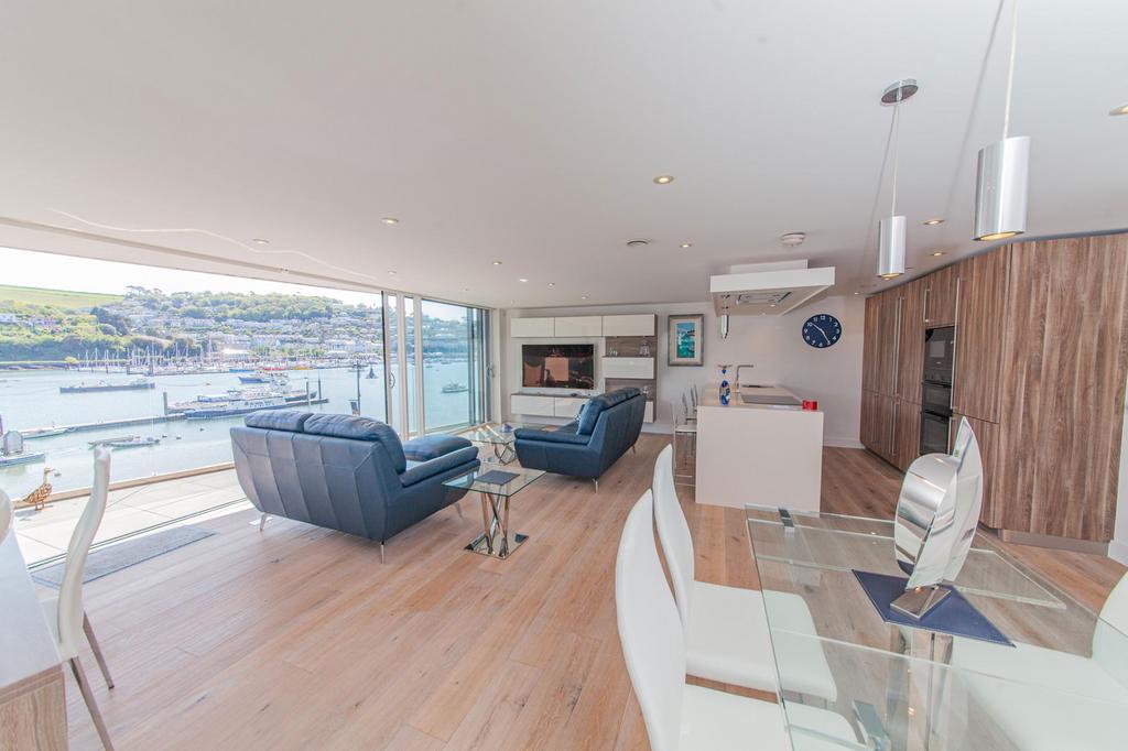 Number 5 Sails is a beautifully presented modern apartment in a prime waterside location within Dartmouth, offering uninterrupted panoramic views across the River Dart, Kingswear, the surrounding farm and woodland. The stunning open-plan living area and principal bedrooms provide a front-row seat to the ever-changing river scenes, from passing super yachts and naval vessels to the excitement of annual regattas.