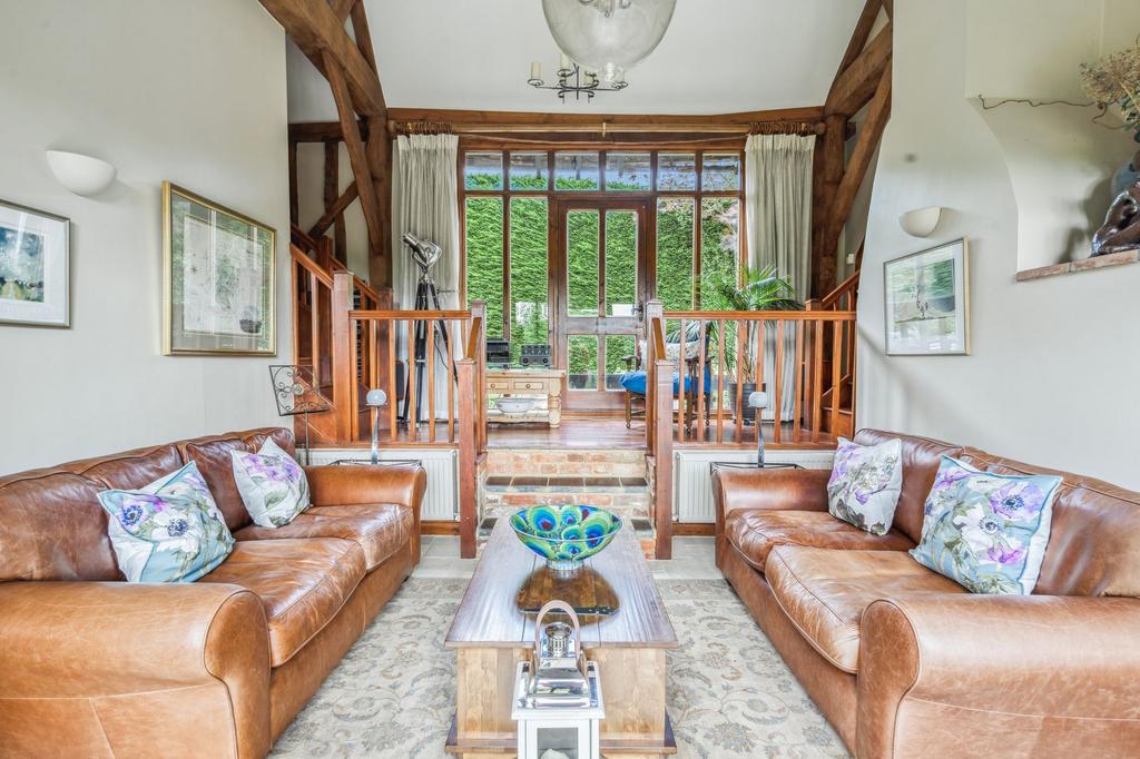 This exceptional grade II listed barn has been in the same ownership for over twenty years and the current custodians have transformed this home into something really special. Quality finishes throughout, honeycomb coloured exposed ceiling and wall timbers. Three recently refitted bathrooms. Space, together with light flooding in from many aspects combine beautifully with the SW facing gardens.