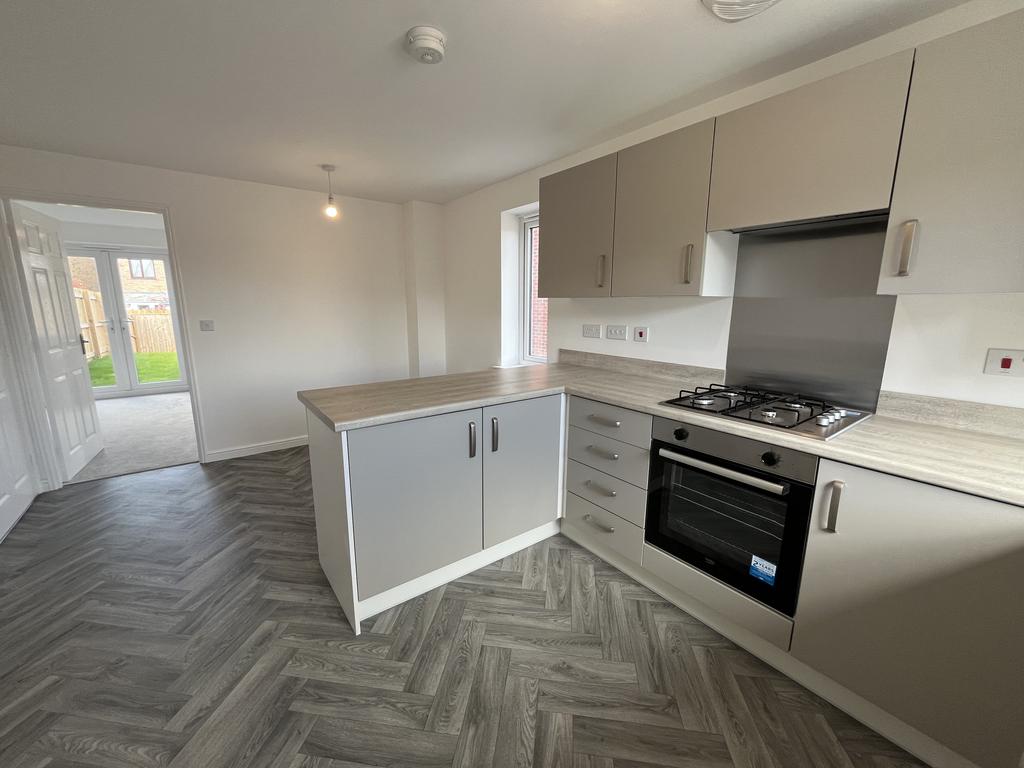 Accommodation: Entrance hall, kitchen/diner with beko integrated appliances - electric oven, 4 ring gas hob and extractor over. Downstairs WC, small understairs cupboard. Lounge with patio door through to rear garden.