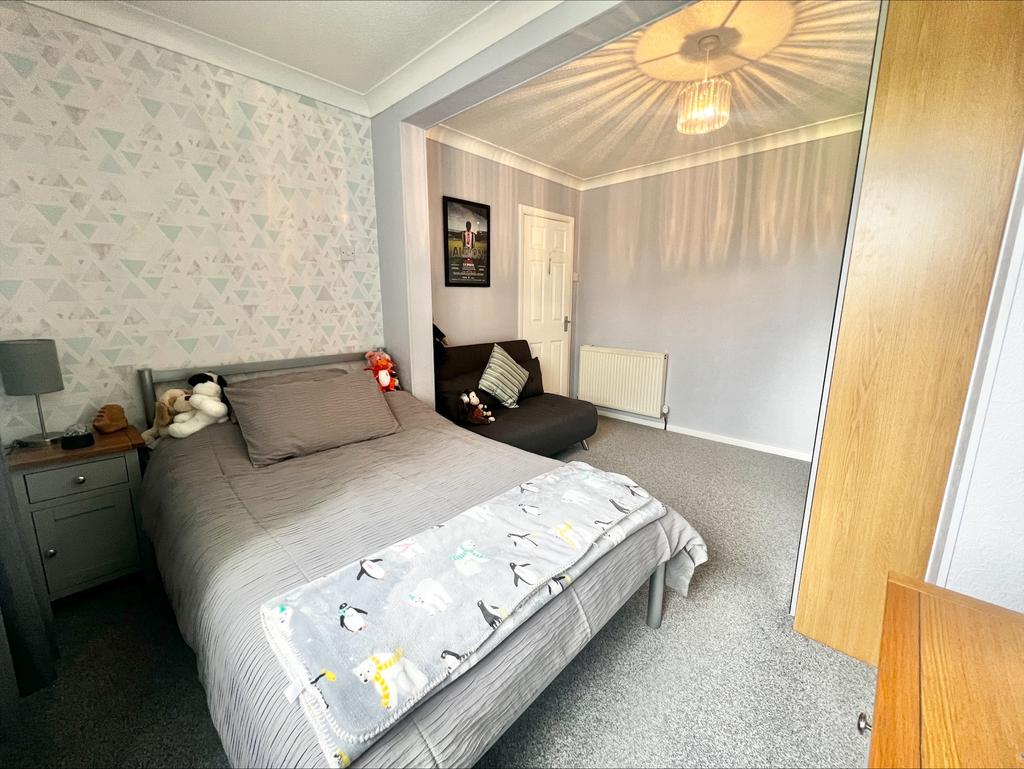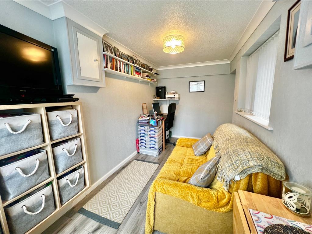 Having laminated flooring, central heating radiator, domestic gas and electric meters in built-in units, UPVC double glazed window to the side, UPVC double glazed bay window to the fore, ceiling light point