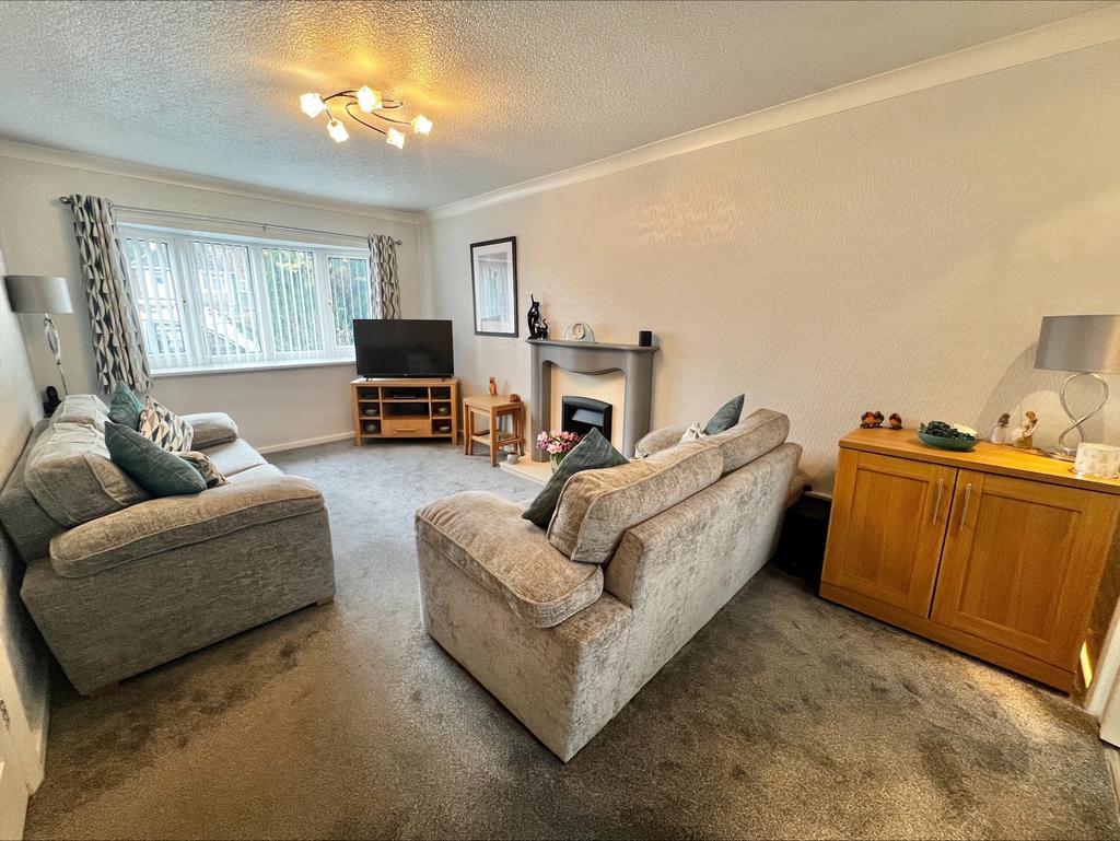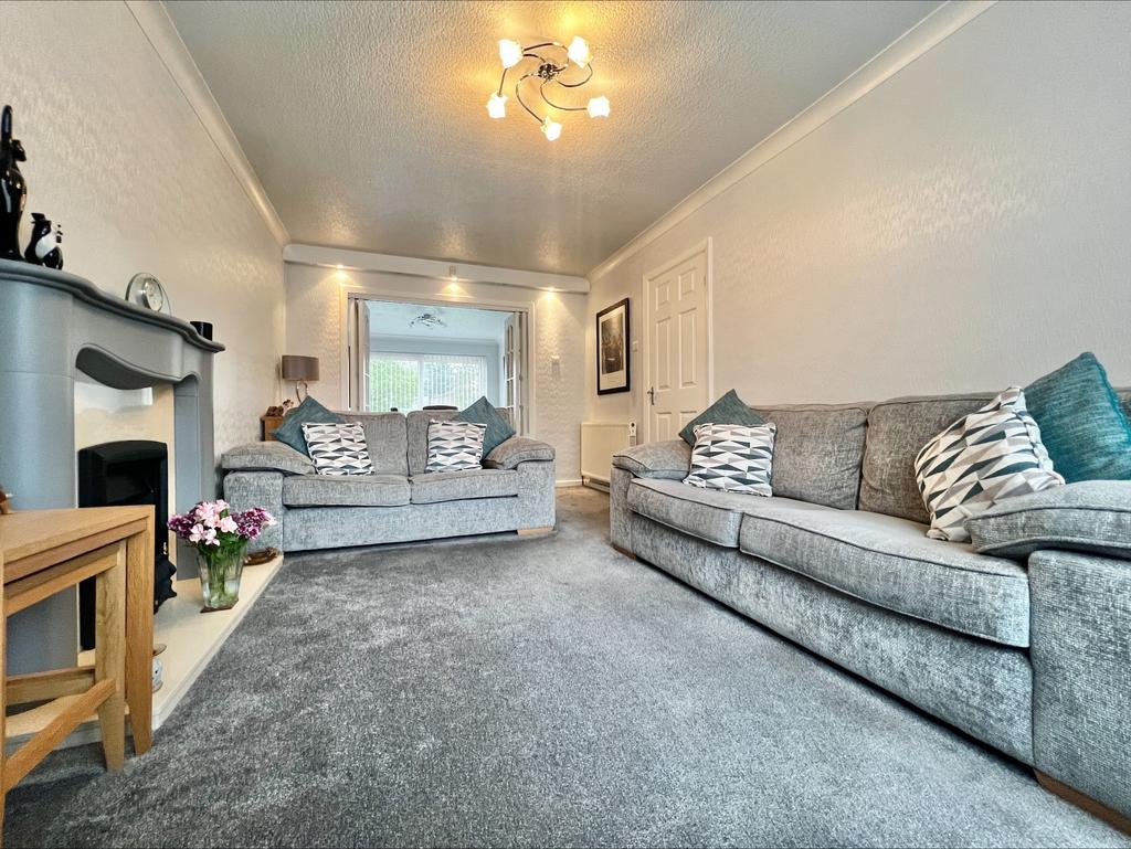 Having a fitted carpet, central heating radiator, coal effect gas fire (not tested) with fire surround, UPVC double glazed bay window to the fore, with folding door leading through to the dining room: Ceiling spotlights, and ceiling light point