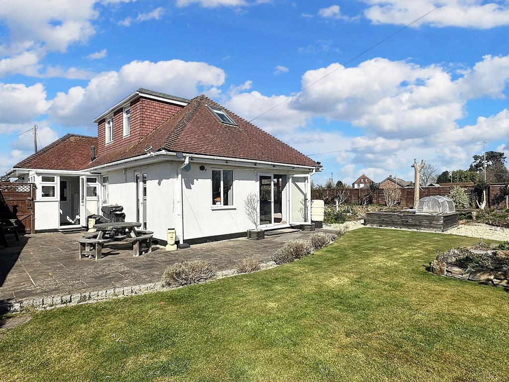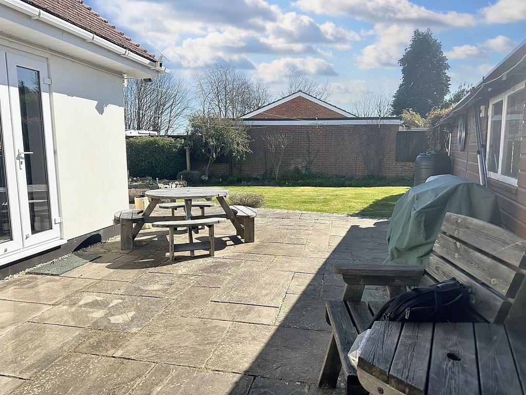 Corner style garden plot which wraps around the whole bungalow. The garden is mainly laid to lawn but it divided sympathetically to create work spaces, veggie patches and patio area. From Lepe Road the pedestrian gate opens onto a resin pathway that leads up to the front door and around to the driveway behind (on Lea Road).