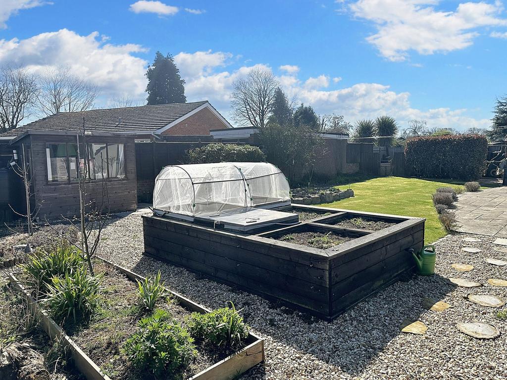 The garden benefits from a large timber outbuilding/garage which is currently used as a workshop, however there is another storage shed by the raised planters, which have been used for growing vegetables previously.