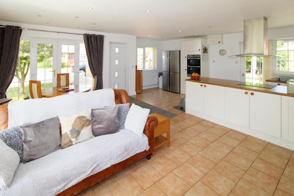FAMILY/LIVING DINING AREA a further seven power points, two radiators, bow window to front, ceiling spots, tv aerial point, telephone point, Multi fuel wood burner, side window and door to: