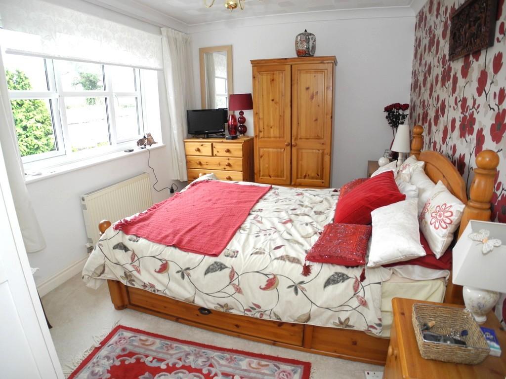 The welcoming entrance hall gives access to a cloakroom, sitting room, dining room, kitchen/breakfast room, and the double garage. The sitting room has windows facing the front, offering plenty of natural light. The white ornate fireplace, complete with a gas coal effect fire and marble hearth, serves as a beautiful focal point in this generously sized space. Double glazed doors open from the sitting room into the conservatory. Through glazed French doors, you're welcomed into the dining room, which features a window to the rear. A doorway leads into the contemporary kitchen, a good-sized space brightened by double aspect windows with views of the attractive rear garden. The kitchen features ample white wall and base units, a double stainless steel sink, and an electric oven and hob with an overhead extractor. This space flows into the utility room, which includes a sink, base units, and space for a washing machine, dishwasher, and fridge. A rear door provides convenient access to the garden. The master bedroom, with window to the front aspect boasts a four-piece ensuite shower room, complete with a bidet, WC, hand wash basin, and shower cubicle. In addition to the master, there are three more double bedrooms. Two of these include built-in cupboards or wardrobes for storage. The third has loft access, equipped with a ladder, and the loft space is partially boarded. A family bathroom comprising a bath, hand wash basin WC and bidet completes the accommodation.