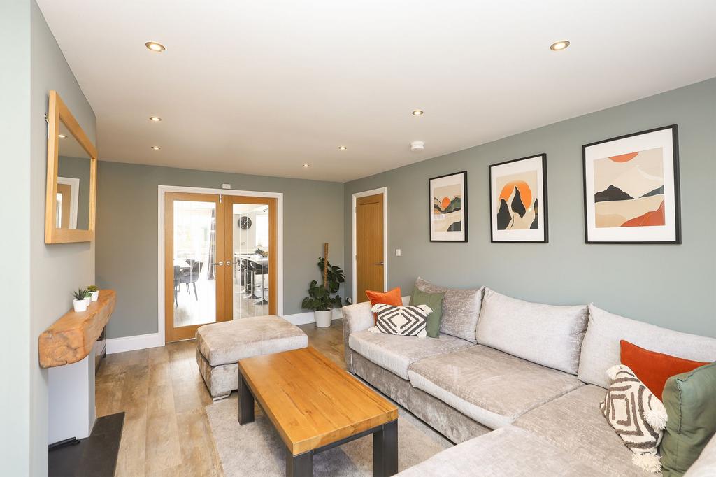 Upon entering, you are welcomed by a spacious and inviting entrance hall that sets the tone for the rest of the property. The extended and contemporarily designed open-plan kitchen and dining area is a true standout. The kitchen has been finished with exceptional attention to detail, featuring a complete range of integrated appliances and a striking feature island that serves as a functional cooking space and a focal point for the room. This space is ideal for family gatherings, entertaining, or enjoying everyday meals in a stylish setting.