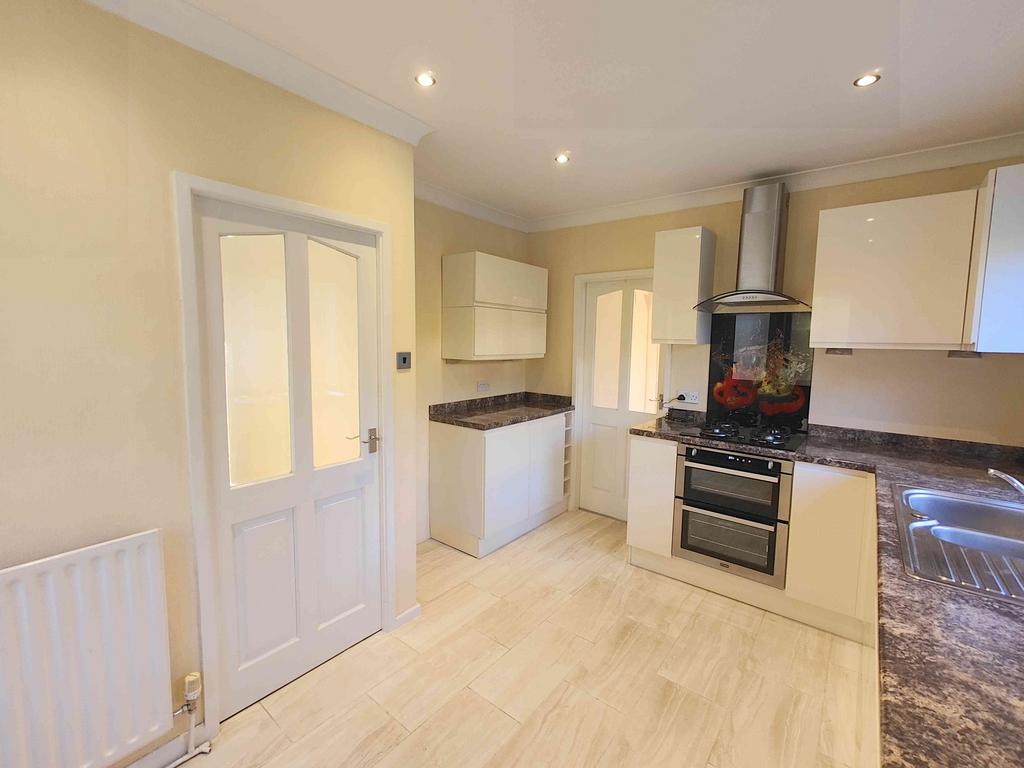 A truly stunning kitchen that offers a large amount of space, ideal for any culinary enthusiast. Freshly installed with all new fixtures and appliances throughout to create this modern and highly functional space. The room is fantastically illuminated owing to numerous ceiling inset spotlights, under cupboard spotlights and two mullioned uPVC double glazed windows to the rear elevation and a frosted uPVC double glazed window to the side elevation. There is ample workspace with laminated work surfaces to all four walls, all with both over and under counter cupboards and drawers. With a fitted gas New World hob, fitted New World oven, stainless steel extractor, modern and stylish glass splashback, single radiator, high quality tiled flooring, plumbing for a dishwasher, plumbing for a washing machine, space for a fridge freezer unit, stainless steel sink and stainless steel mixer tap.