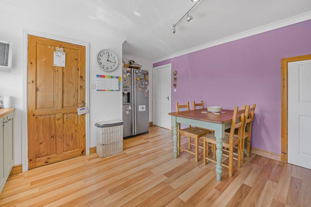 A range of matching wall and base units with complimentary worktops, Built in electric oven, hob and extractor fan, integrated dishwasher, Ceramic sink with drainer, under stairs storage cupboard. Additional storage/utility cupboard plumbed for washing machine. Window to rear, laminated wood flooring.