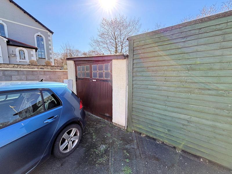 OUTSIDE REARFully enclosed terrace area with covered gated access to front, 6 slate steps up to a low maintenance gravel and paved garden with mature hedging and shrubs, stone built storage shed, oil tank located here.