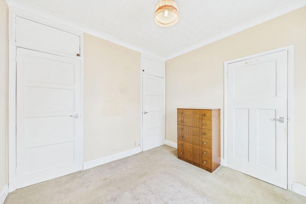 Bay window, fitted wardrobes with cupboards above, radiator.