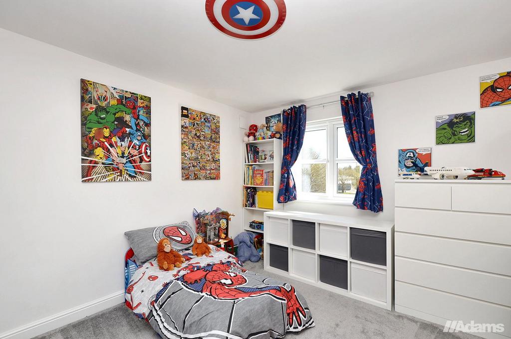 Upstairs, the property boasts a generous landing leading to four well-proportioned bedrooms. The main bedroom is a standout feature, benefiting from a striking arched window and an en-suite shower room. Three of the bedrooms also offer fitted wardrobes, ensuring ample storage space. A modern family bathroom serves the remaining rooms.