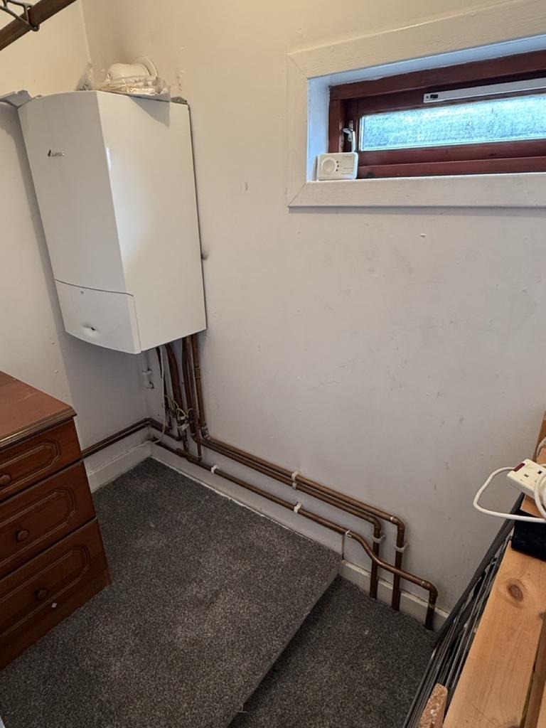 Gas boiler. Small window to the front of the property.