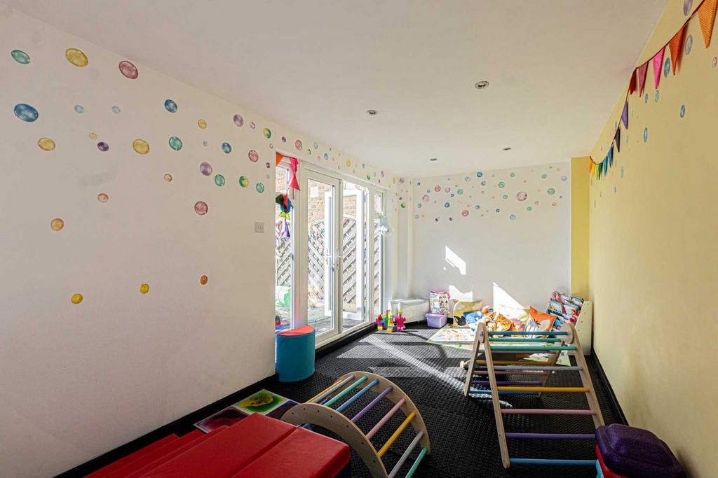 To the front, a private driveway for three cars ensures convenient off-street parking. The generous rear garden provides the perfect outdoor retreat, with plenty of space for entertaining, relaxing, or for children to play. A standout feature of this property is the large outbuilding, which offers incredible versatility—ideal as a home office, gym, or additional entertainment space.