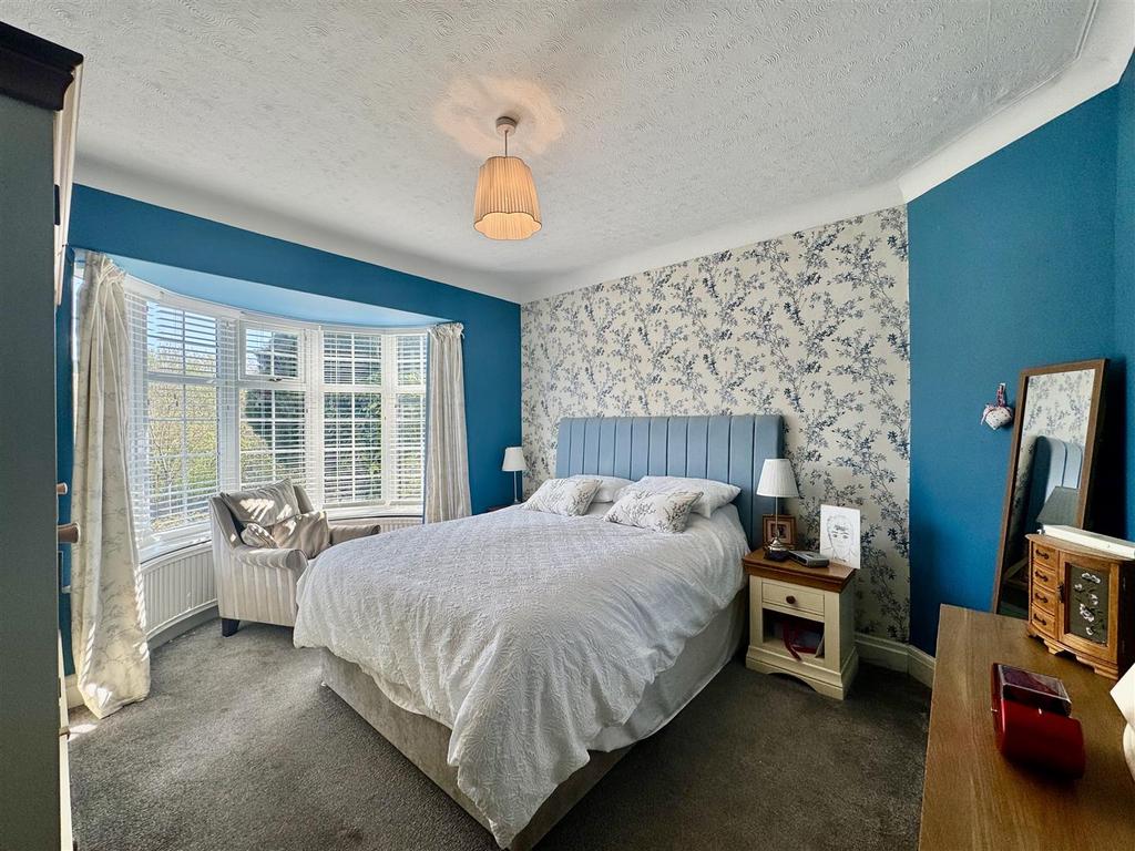Bedroom One - 4.33 max into bay x 3.65 apx (14'2" max into bay x - This superb double bedroom is nicely decorated, is positioned at the front of the property and looks over the garden, street below and far reaching views beyond through its large bay window. There is ample room for freestanding furniture and a doorway leads to the hallway.