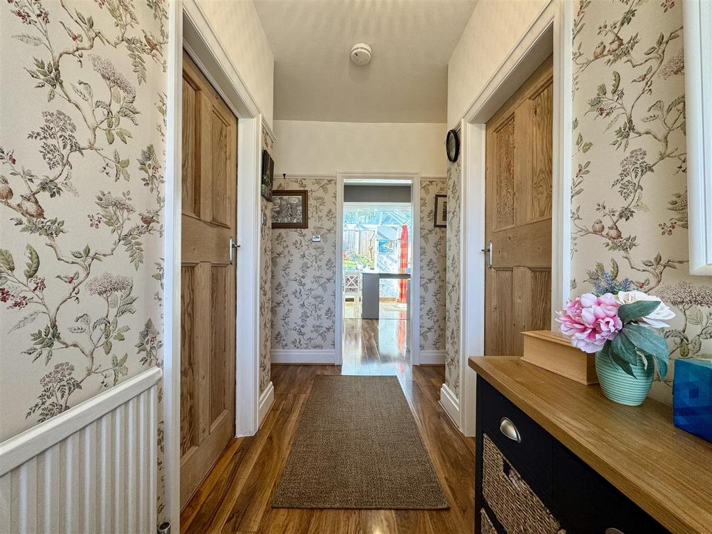 Entrance Hallway - You enter the property through a timber door with a leaded glazing surround into this welcoming and light entrance hallway which has space for freestanding furniture and space to remove outdoor clothing. Laminate flooring flows underfoot and a hatch gives access to the part boarded loft. Doors lead through to the lounge, utility, shower room and two double bedrooms. An opening leads into the kitchen.