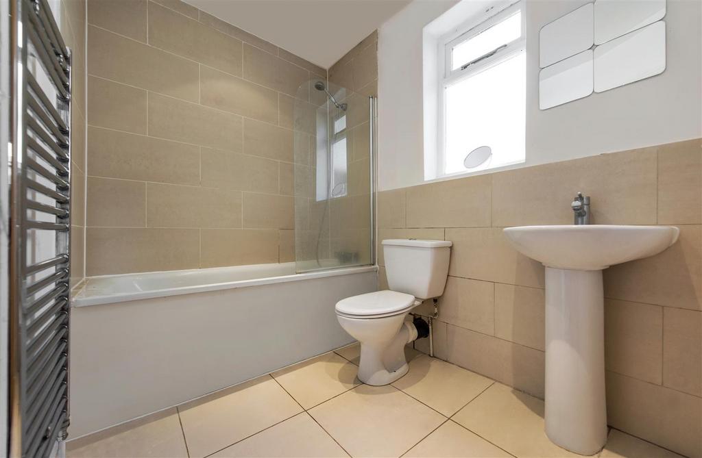 All three bedrooms are doubles, one nestled to the rear of the first floor with leafy views of the neighbouring gardens, with the other two set upstairs, both enjoying multiple Velux windows and neutral décor, keeping in tune with the bright and airy feel of the rest of the property. The bathroom is conveniently set in the middle of the home, complete with a bathtub for those moments only a soak in the bubbles will do.