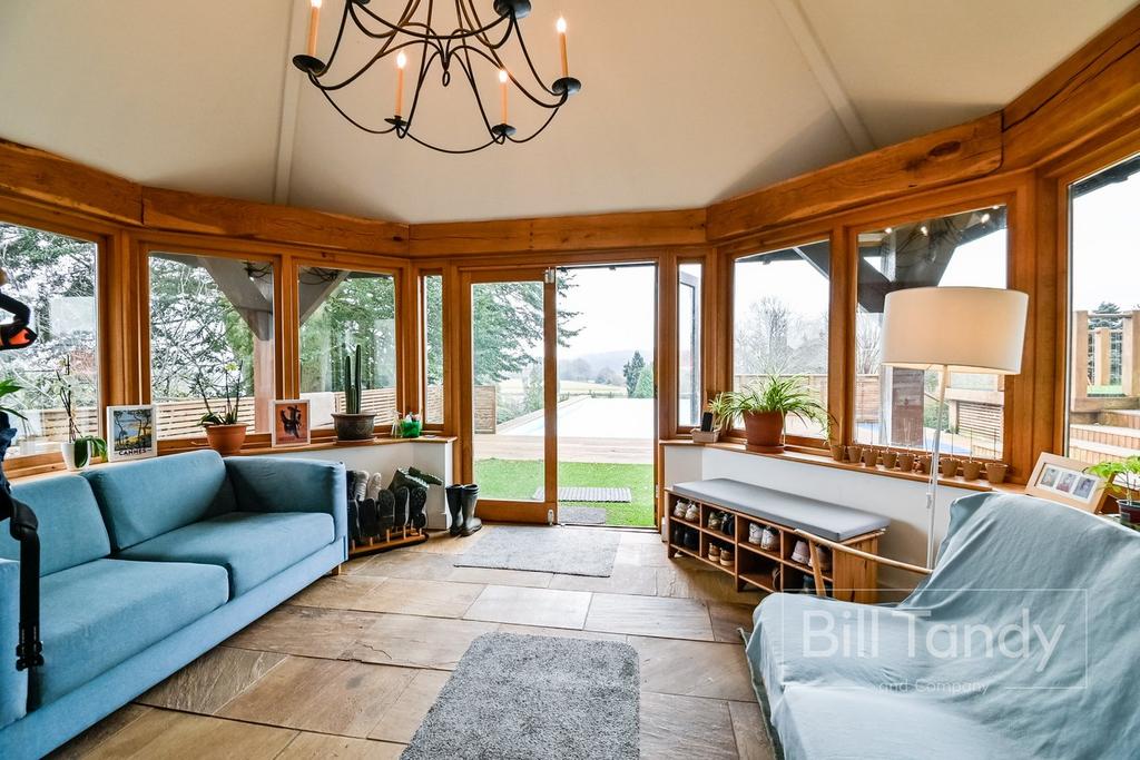 The property is discreetly set back off Lower Way behind a gated entrance with extensive driveway and parking for numerous cars, and lawned foregardens full of mature trees and shrubs. To the rear, this property really comes into its own, not least of all with the glorious swimming deck with an infinity HEATED SWIMMING POOL 42 feet by 18 feet approximately with electric auto safety cover, further decked seating area again perfect for taking in the wonderful countryside views. The garden extends to some 2.6 acres, full of specimen trees, outbuildings including the changing room for the swimming pool, plant room with all the pool equipment together with several sheds and gazebo. Further land is available by separate negotiation. Additional planning permission granted to create 2 further ensuite bedrooms.