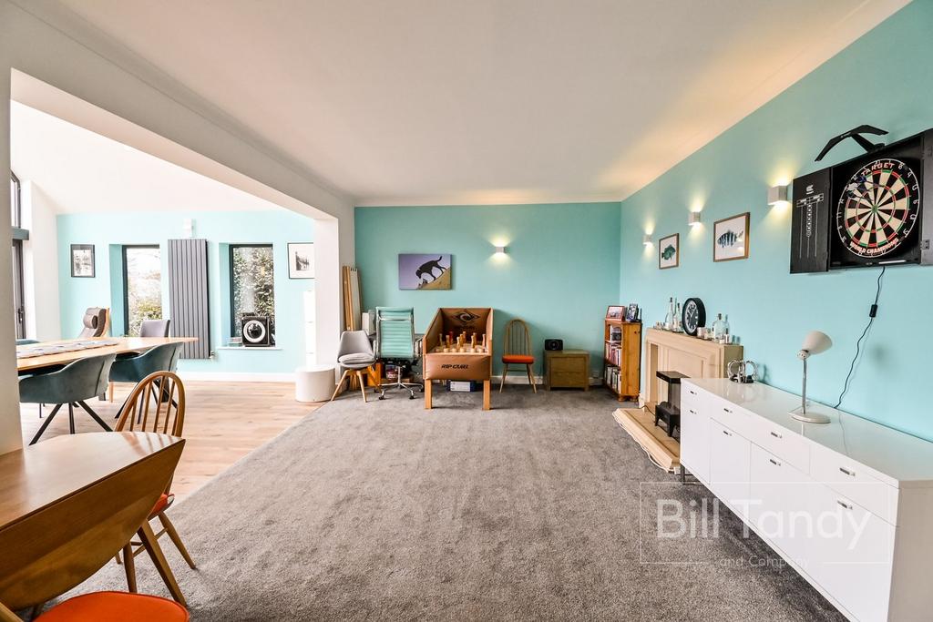 KITCHEN AREA 7.40m x 4.40m (24' 3" x 14' 5") having a high vaulted ceiling, full height glazed panel with double sliding doors to the rear decking and twin sky lights flooding the area with natural light. There is a central island with natural wood work top with prep sink, integral appliances including twin electric ovens and four ring hob, plumbing and space for fridge/freezer, 3x integrated dishwashers and flowing through to the SITTING AREA 4.60m x 4.51m (15' 1" x 14' 10") again with wide double glazed sliding doors onto the rear balcony, electric skylight with LED's and continuing to flow through to the DINING AREA 4.60m x 4.51m (15' 1" x 14' 10") which has a similar high vaulted ceiling, full height glazed panel, double glazed doors and skylights again flooding the area with natural light from the remarkable southerly aspect. BAR AREA 4.00m x 4.00m (13' 1" x 13' 1") perfect for entertaining this fully equipped bar has extensive storage including glazed cabinets with lig...