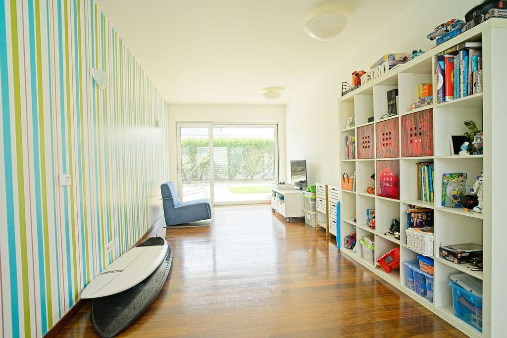 The outdoor area was designed with care and attention to detail — nothing was left to chance. It includes a swimming pool and a clean and modern design garden that fits well with the clean lines of the house. There's also a dedicated space for pets, making this the perfect home for animal lovers seeking comfort for the entire family.
