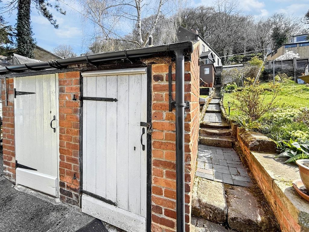 Exterior - To the front, there is communal parking and a small fore garden with a lawn and a seating area—perfect for relaxing. The rear garden features a right of way and further access via an alleyway leading to the front. A brick outbuilding with power and lighting houses plumbing for a washing machine, space for a dryer, and additional storage. The garden itself is well-maintained, with lawns, planted borders, and a garden shed. A paved patio area at the top of the garden provides a lovely spot to enjoy the sun—ideal for unwinding with a summer G&T!