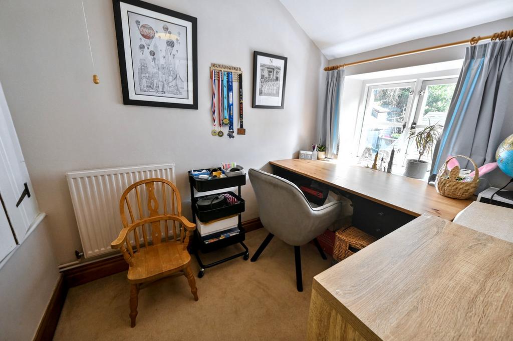 Upstairs, the spacious master bedroom boasts a wooden fire surround with a cast iron inset, adding to the period charm. There is also a second smaller bedroom and a fitted bathroom.