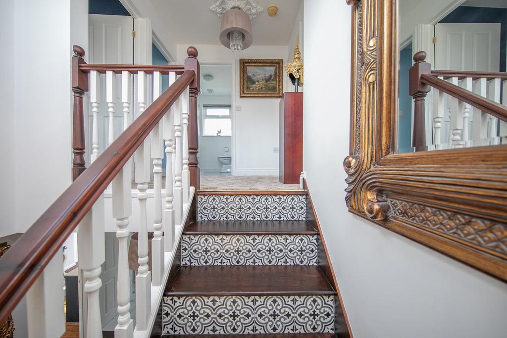 A spacious hall with stairs to first floor, radiator, airing cupboard, storage cupboard and doors to.