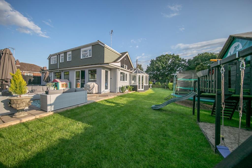 Guide Price £650,000 to £700,000 Sitting on a brilliant wrap round plot and offering 2000sqft of flexible accommodation on the edge of this popular commuter village is this spacious detached chalet style home with planning permission granted for a double garage. Having been upgraded and beautifully modernised to a high standard this stylish property currently offers three generous first floor bedrooms and two en-suites, three ground floor bedrooms, ground floor bathroom, spacious hall, lounge, garden room and 17' kitchen/diner. Alresford is a small commuter village with train station, good local shops, pub, amenities whilst remaining in easy reach of further transport links and offering countryside walks on the doorstep.