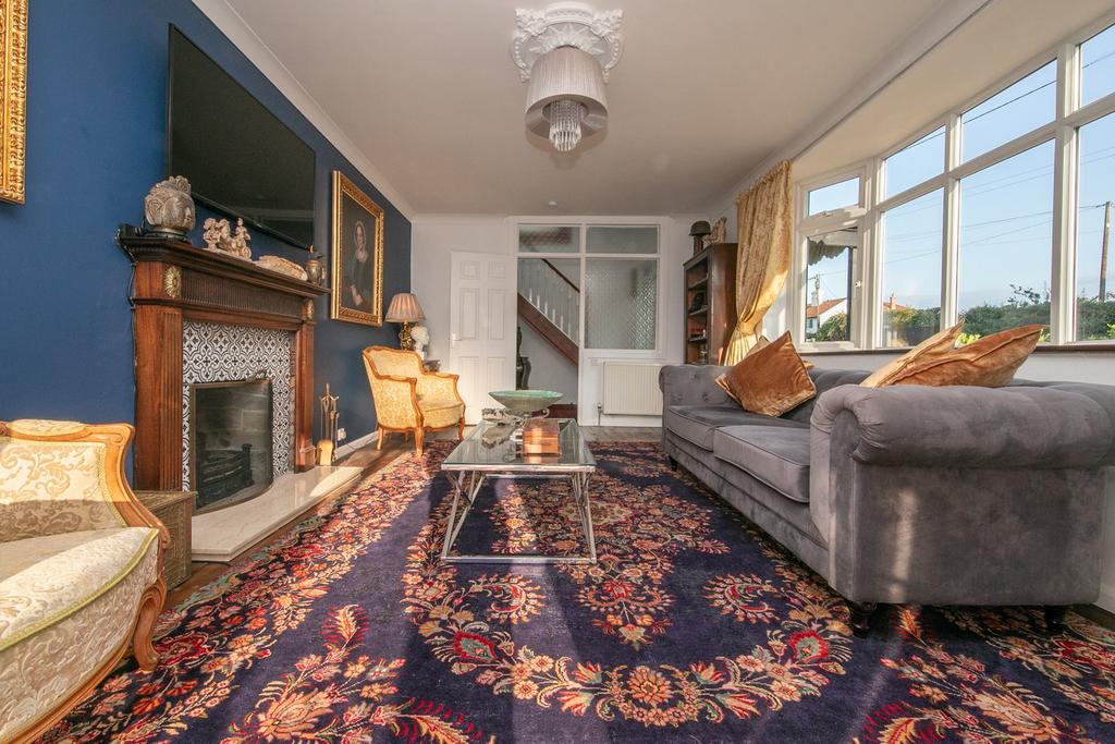 17' 2" x 11' 6" (5.23m x 3.51m) Bow bay window to front, patio doors to side, radiator, open fireplace, patio doors to garden room.