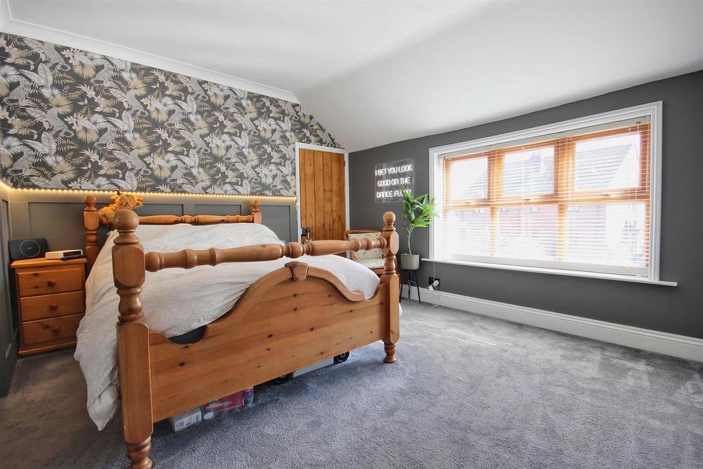 Bedroom 1 (Front) - 4.85m x 4.42m (15'11" x 14'6") - With a built in storage cupboard over the stairs, one central heating radiator and doorway to: