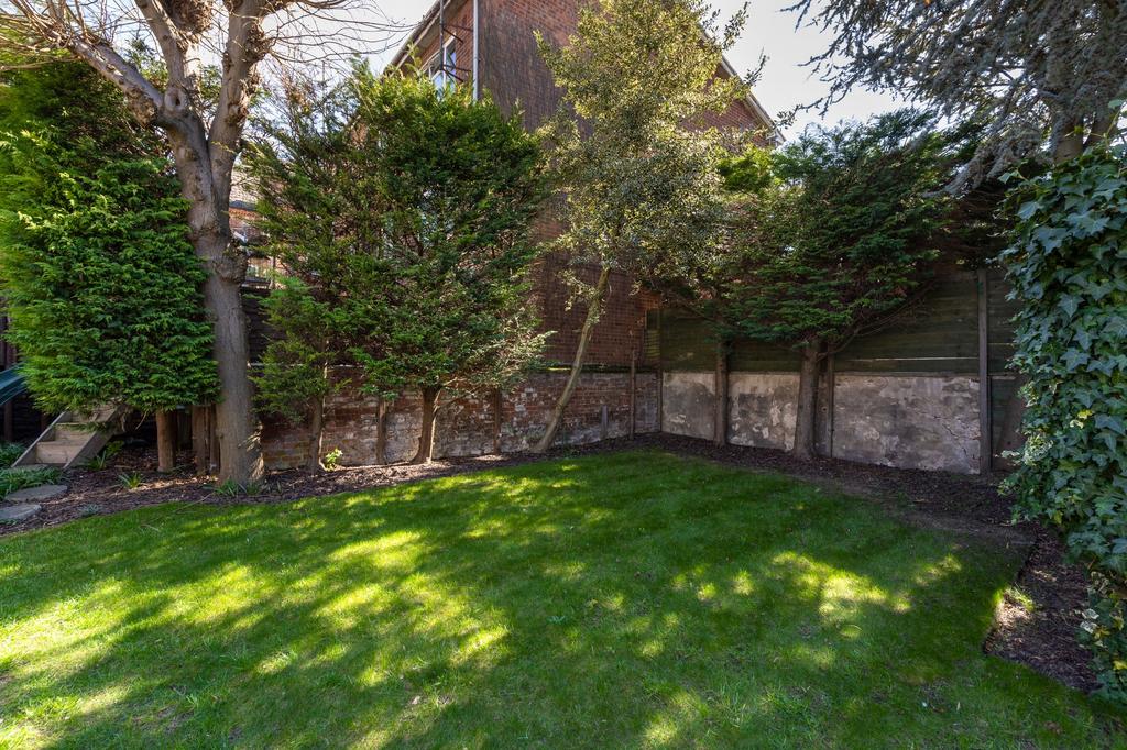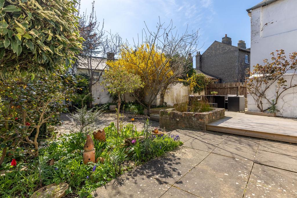 Outside, to the rear, the large south-facing garden is an excellent size, fully enclosed by fencing, hedgerows and brick walls and offering multiple wonderfully private spots to relax and enjoy the warm weather. It is laid to lawn, gravel, patio and decking areas, providing ample space for entertaining and cooking meals al fresco. There are some beautifully tended borders and beds, full of different plants, shrubs and mature trees, and plenty of scope for future owners to put their own touches on things. Interestingly, the inset section in the middle of the garden would once be used for cockfighting and has a tunnel which leads to different points of the town centre of Newmarket for when spectators would escape the police.