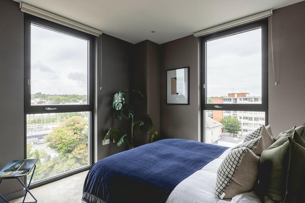 This stylish 1 bed apartment comes furnished with a north-facing balcony, bespoke furniture package and floor-to-ceiling windows fitted with blackout blinds - perfect for sunny days and restful nights.