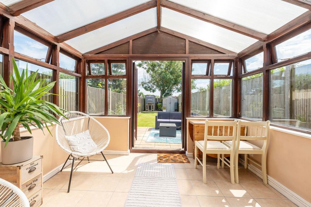 - A sunlit conservatory with large windows offers a bright and airy area, perfect for relaxation or additional living space