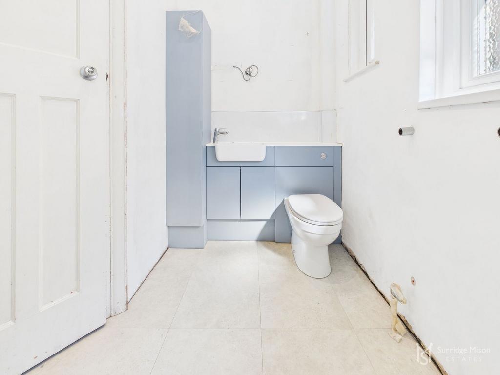 Double glazed opaque window to side. Stripped wooden floor boards. Picture rail and coved ceiling. Wash hand basin with tiled splashback and W.C.