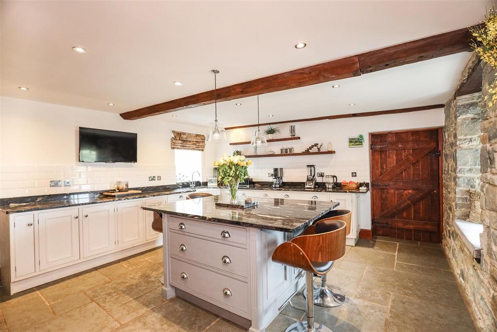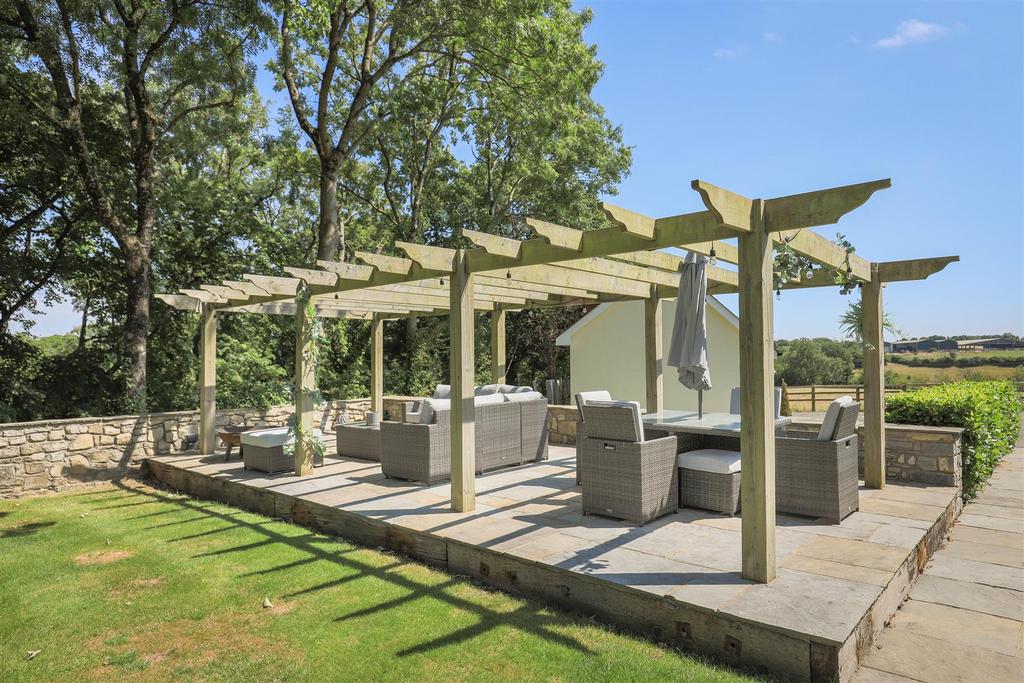 Summary - A truly exceptional thatched property in a unique location enjoying the most amazing views over the Nant Carfan Valley and surrounding farmland. This Grade II Listed family home retains incredible character yet has been sympathetically and traditionally modernised by the current owners to provide a skillful blend of charm and modern convenience. Family lounge with open fire, contemporary kitchen with central island and dining room beyond. Also family sitting room with wood burner and utility room with cloakroom. To the first floor level there are four double bedrooms, two of these with en suite shower rooms, and a separate shower room. Outside the property has a superb conservatory opening paved terrace leading onto a floating deck positioned to look out over, and enjoy the views of, the Nant Carfan Valley. Ample lawned garden to front with additional raised flagstone-paved and pergola-covered outdoor dining area. Ample parking and double garage with office/games room above. Additional paddock and American style barn with four bays and 2/3 store rooms with outdoor manege of approximately 50m x 20m. The paddock, garden, woodland and grounds reach approximately 7 acres in total.