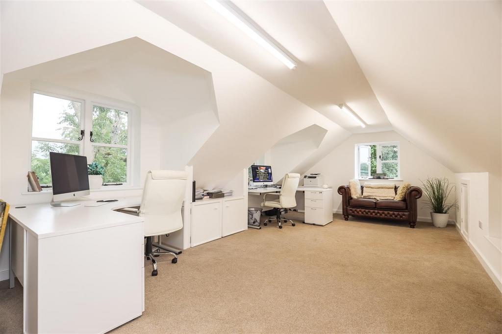 * It includes fitted wardrobes and has its own luxurious en suite shower room with twin hand basins and a walk-in shower and a dramatic pitched window providing great natural light and fine open views.
