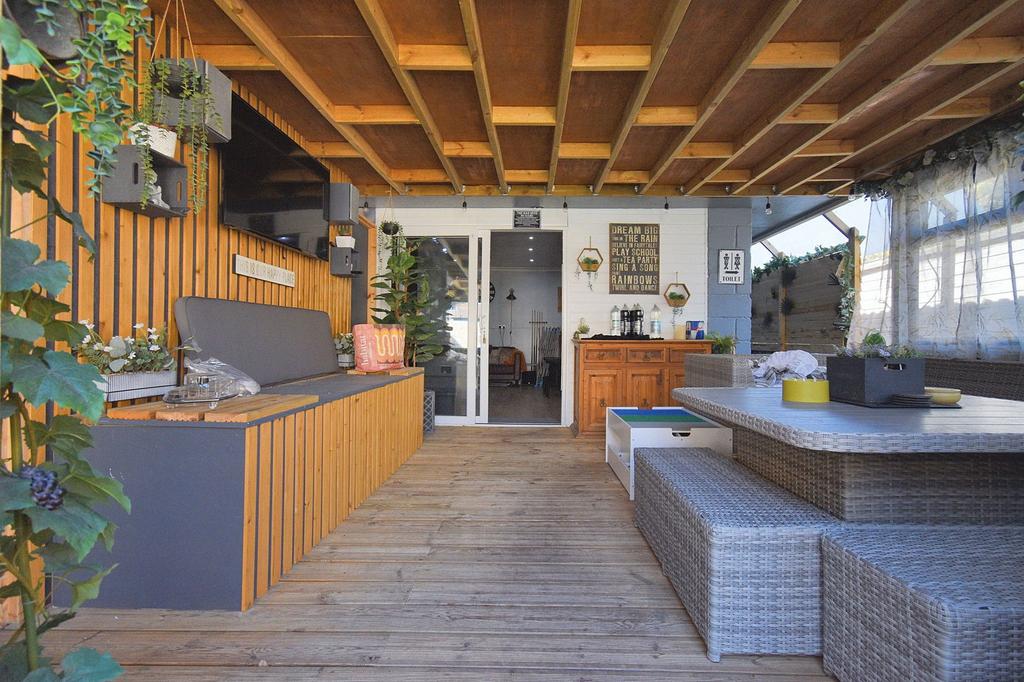 However, the best part of the garden has got to be the gorgeous garden room. The current owners have had many a party or get-together, and this space is perfect for larger gatherings or for just watching the game whilst you enjoy a drink at your own bar.