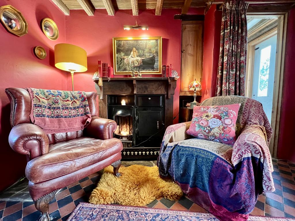Having window to the front aspect, door to the rear, under stairs storage, an attractive cast iron fireplace/cooking range with dog grate, feature chequered quarry tiled flooring, exposed ceiling beams, radiator and wall lights. A door leads to the stairs to the first floor.