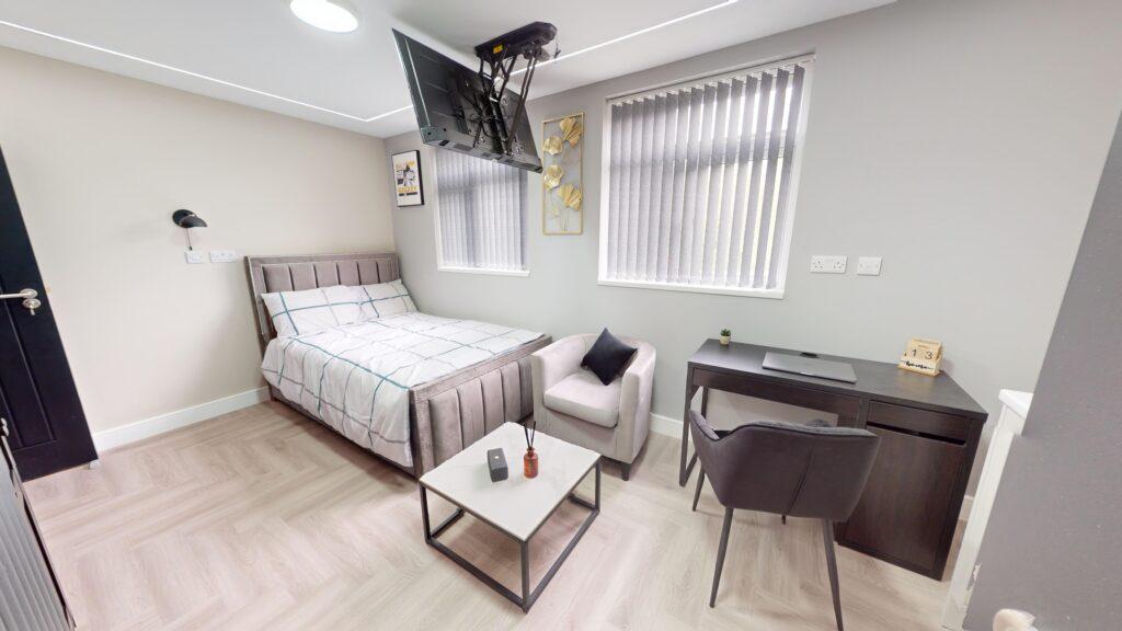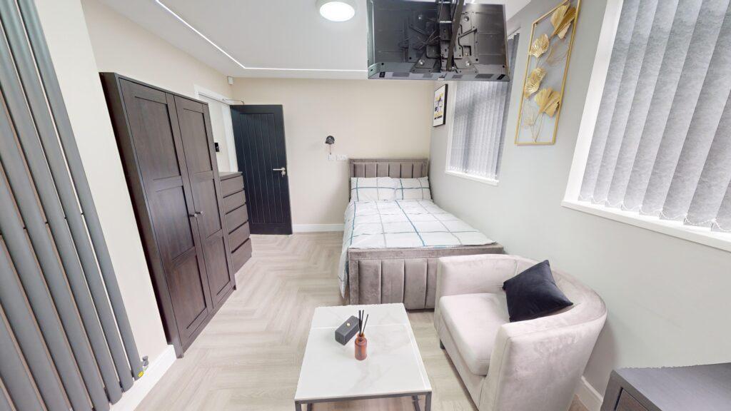 This is a fully furnished luxury studio apartment. The property is very spacious and includes gas, water, electricity, internet and TV license. These studios are best suited for students and working professionals. Please note that if you are not a student you will be liable for council tax.