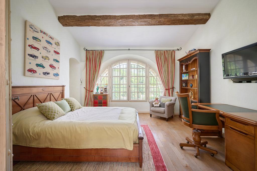 The basement is an entertainer’s dream, complete with a home cinema, spa, music room, wine cellar, cigar cellar, and a garden-level guest apartment. Set on 16,709 m² of meticulously maintained Mediterranean gardens, the estate includes a tennis court, three garages, and a jeu de boules.