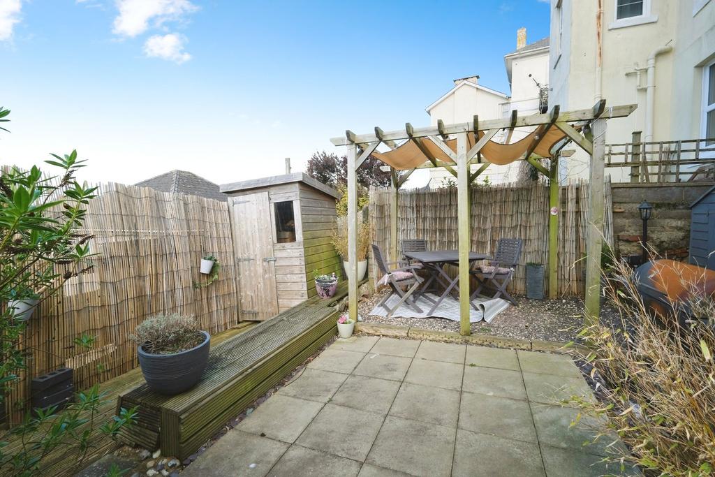 Front garden is lovely and private due to hedges, there is a undercover seating area that expands out to enjoy the sunshine and parking to the side, stairs lead to the rear garden which is decked and a gate leads to a further two decked areas and patio with two sheds and bbq area.