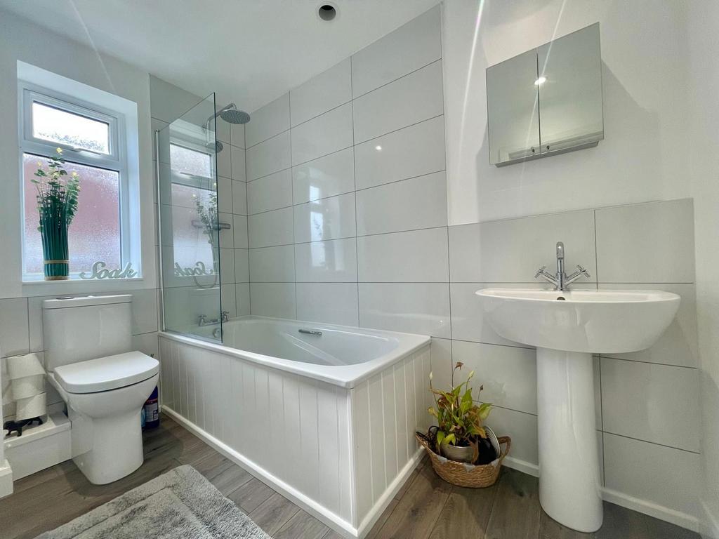- Newly Fitted Downstairs Bathroom – Includes a bath with shower over, W.C., and a modern white hand wash basin.