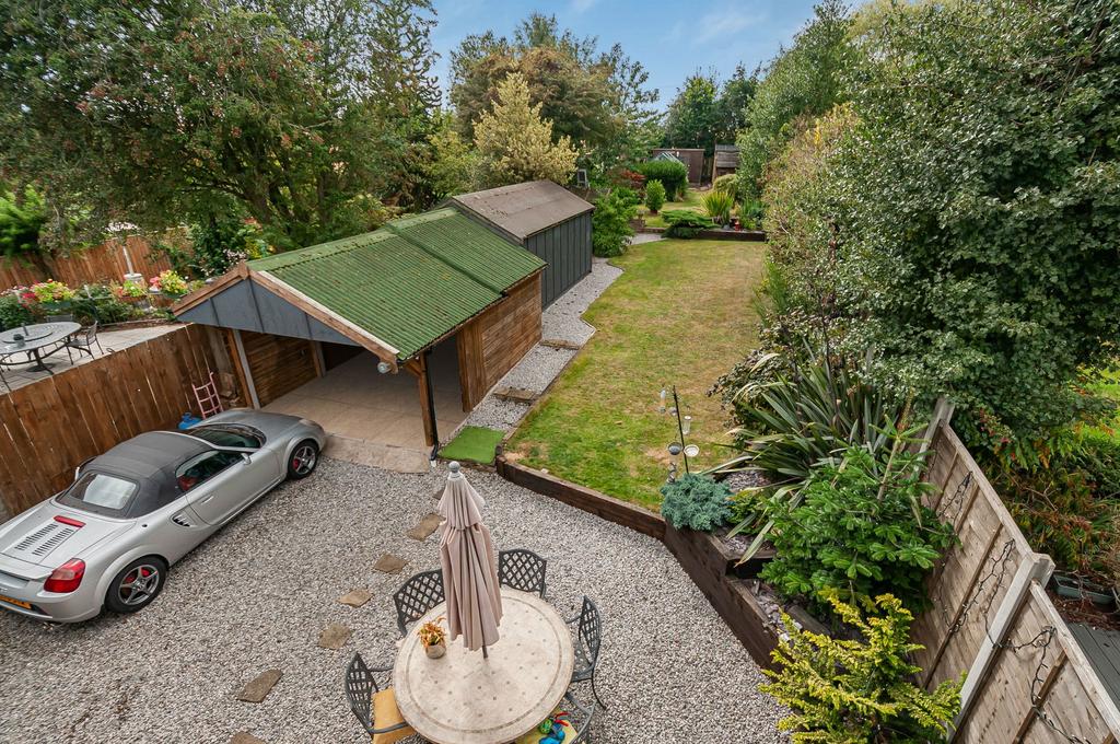 In addition to the fabulous living spaces and garden, this home benefits from a rustic-style carport measuring over 18ft x 11'10, offering excellent shelter for vehicles or additional storage. Beyond the carport, a large workshop provides a practical space for hobbies, DIY projects, or extra storage solutions.