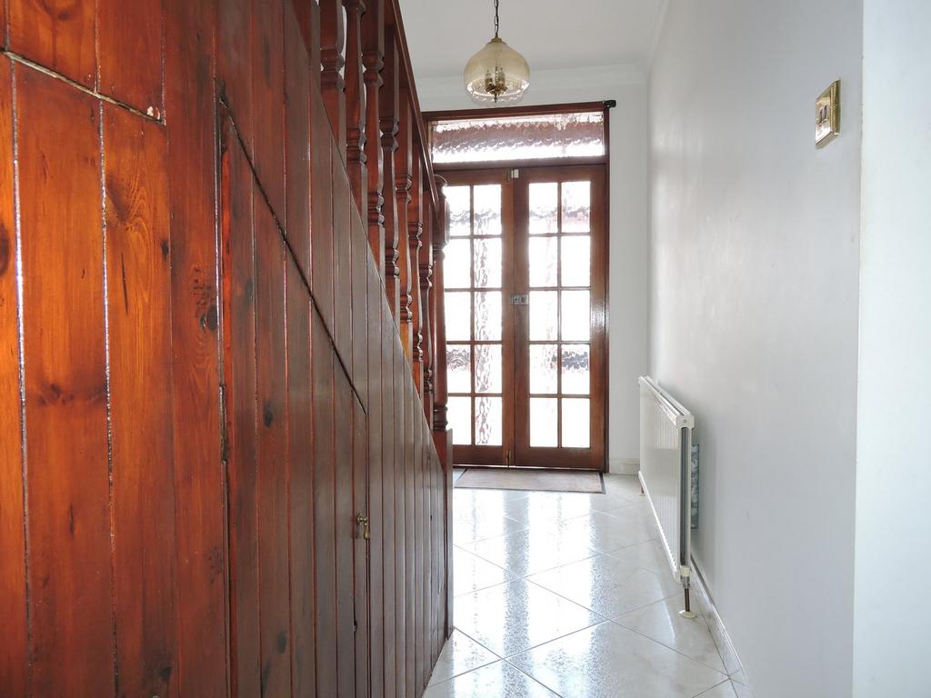 Via double wooden doors, tiled flooring, coving to ceiling, stairs to first floor landing, doors to lounge & family kitchen diner.